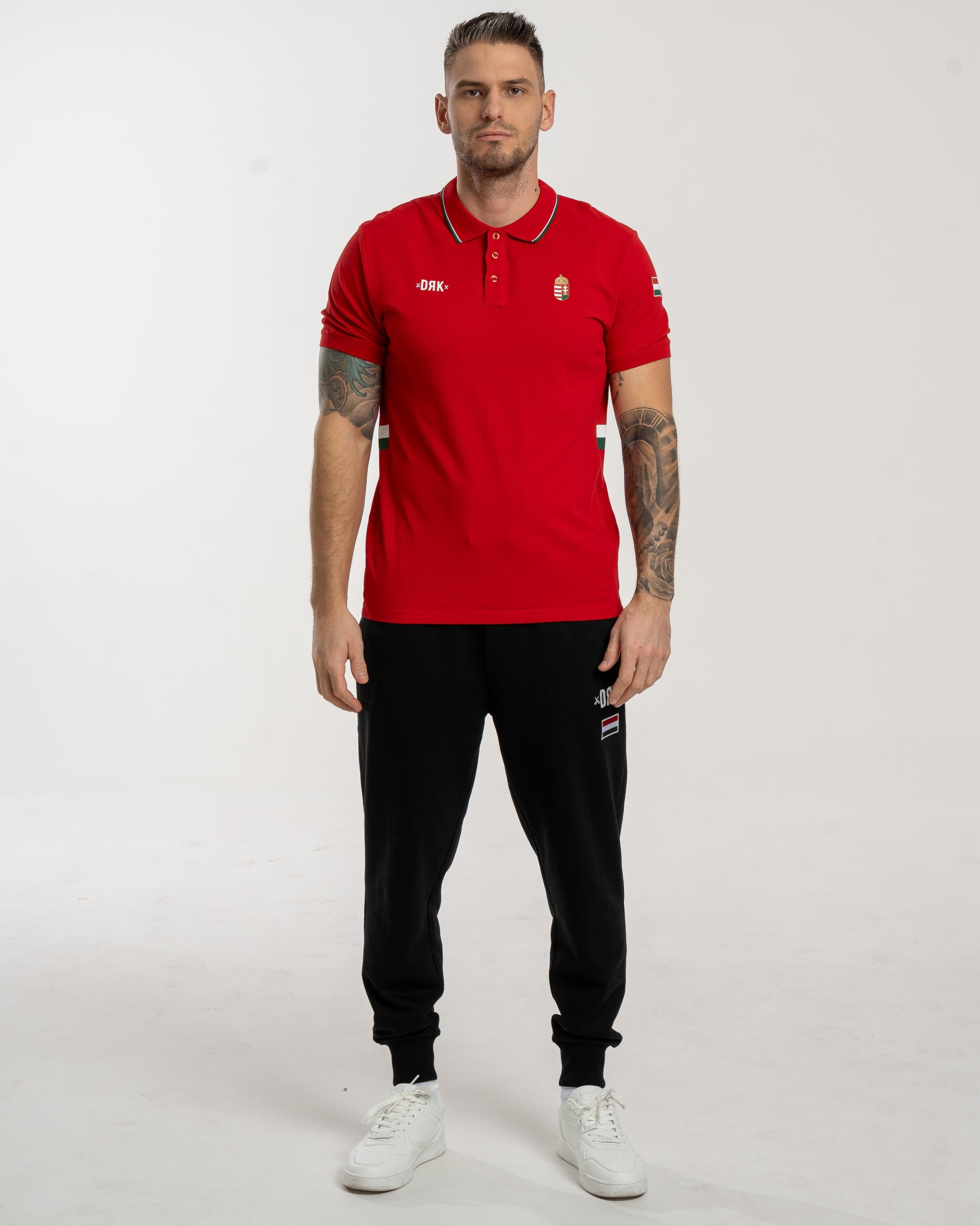Tricou piqué cu guler, cu un design elegant și motive naționale stilizate. Pe lateral are inserții în culorile naționale, care se armonizează cu banda decorativă de pe manșeta elastică tricotată. Realizat din 100% bumbac, oferă un confort excelent la purtare și se integrează perfect în colecția Dorko Hungary podium.