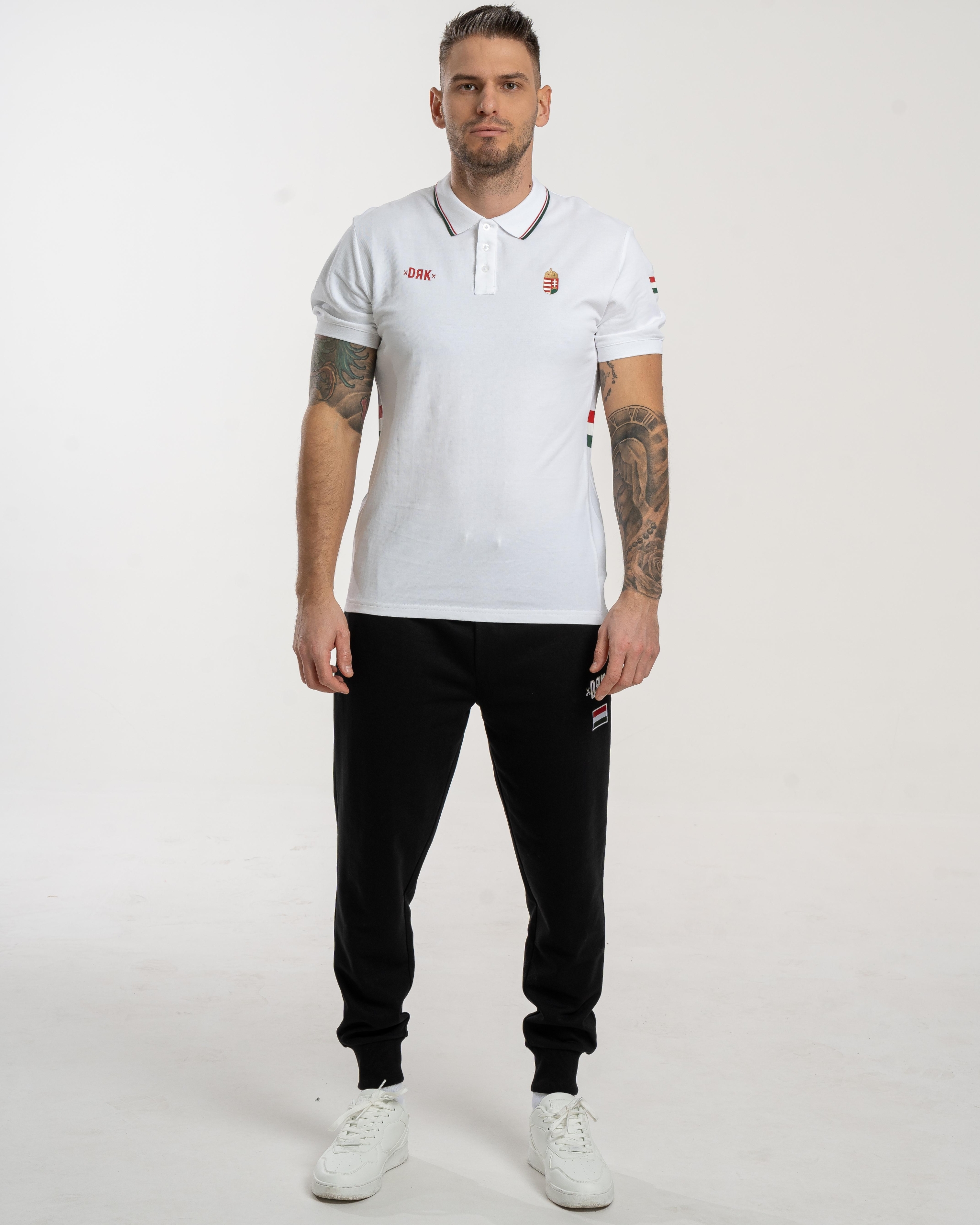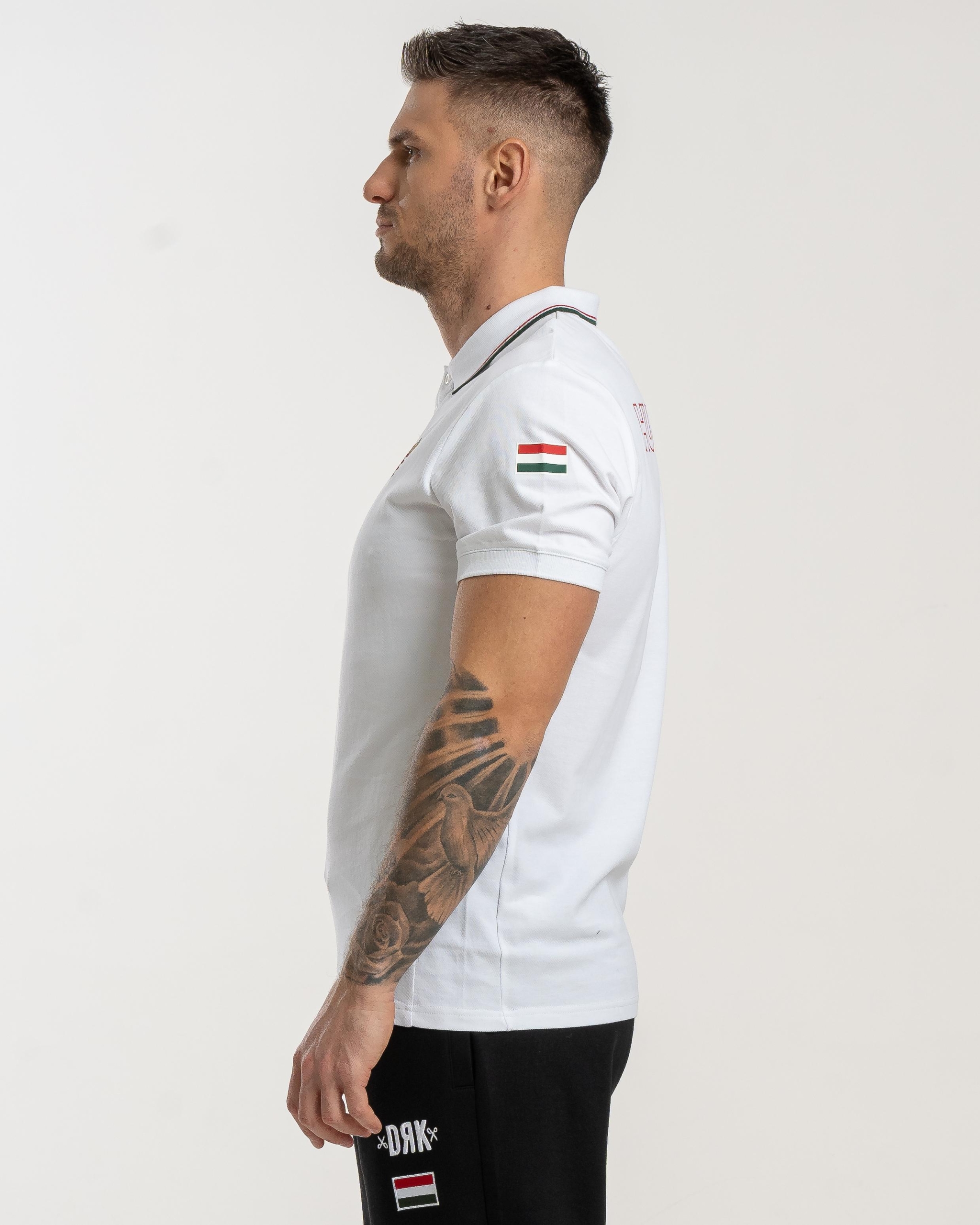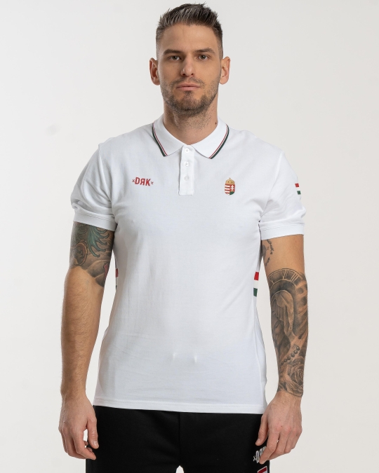 Tricou piqué cu guler, cu un design elegant și motive naționale stilizate. Pe lateral are inserții în culorile naționale, care se armonizează cu banda decorativă de pe manșeta elastică tricotată. Realizat din 100% bumbac, oferă un confort excelent la purtare și se integrează perfect în colecția Dorko Hungary podium.