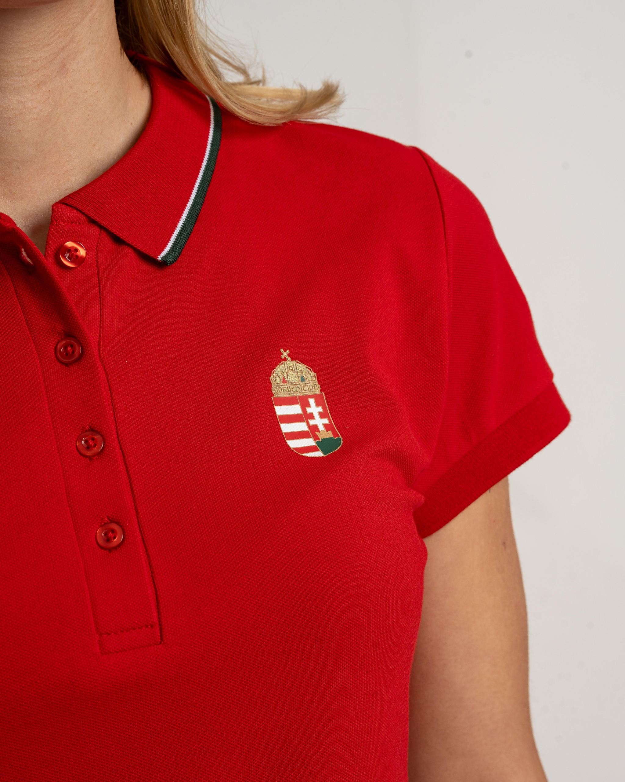 Tricou piqué cu guler, cu un design elegant și motive naționale stilate. Pe lateral are inserții în culorile naționale, care se armonizează cu banda decorativă ce traversează manșeta elastică tricotată. Realizat din 100% bumbac, oferă un confort excelent la purtare și se integrează perfect în colecția Dorko Hungary podium.