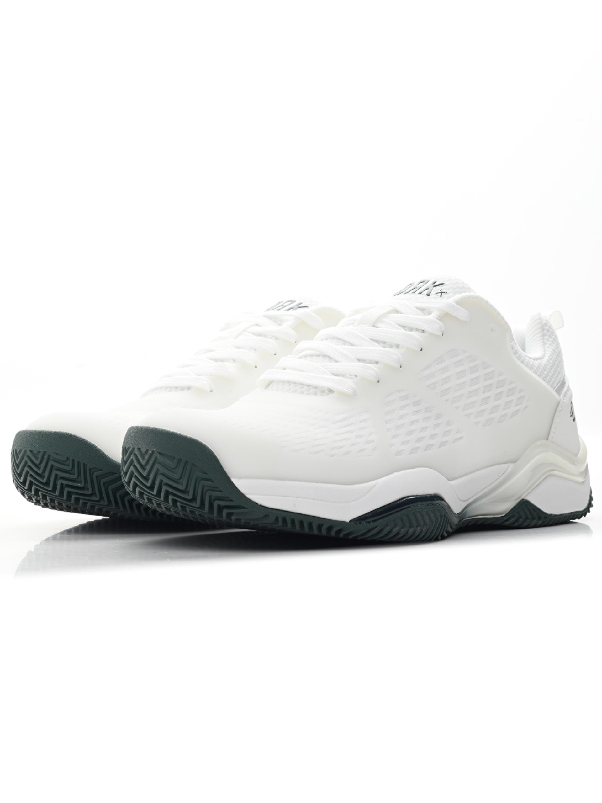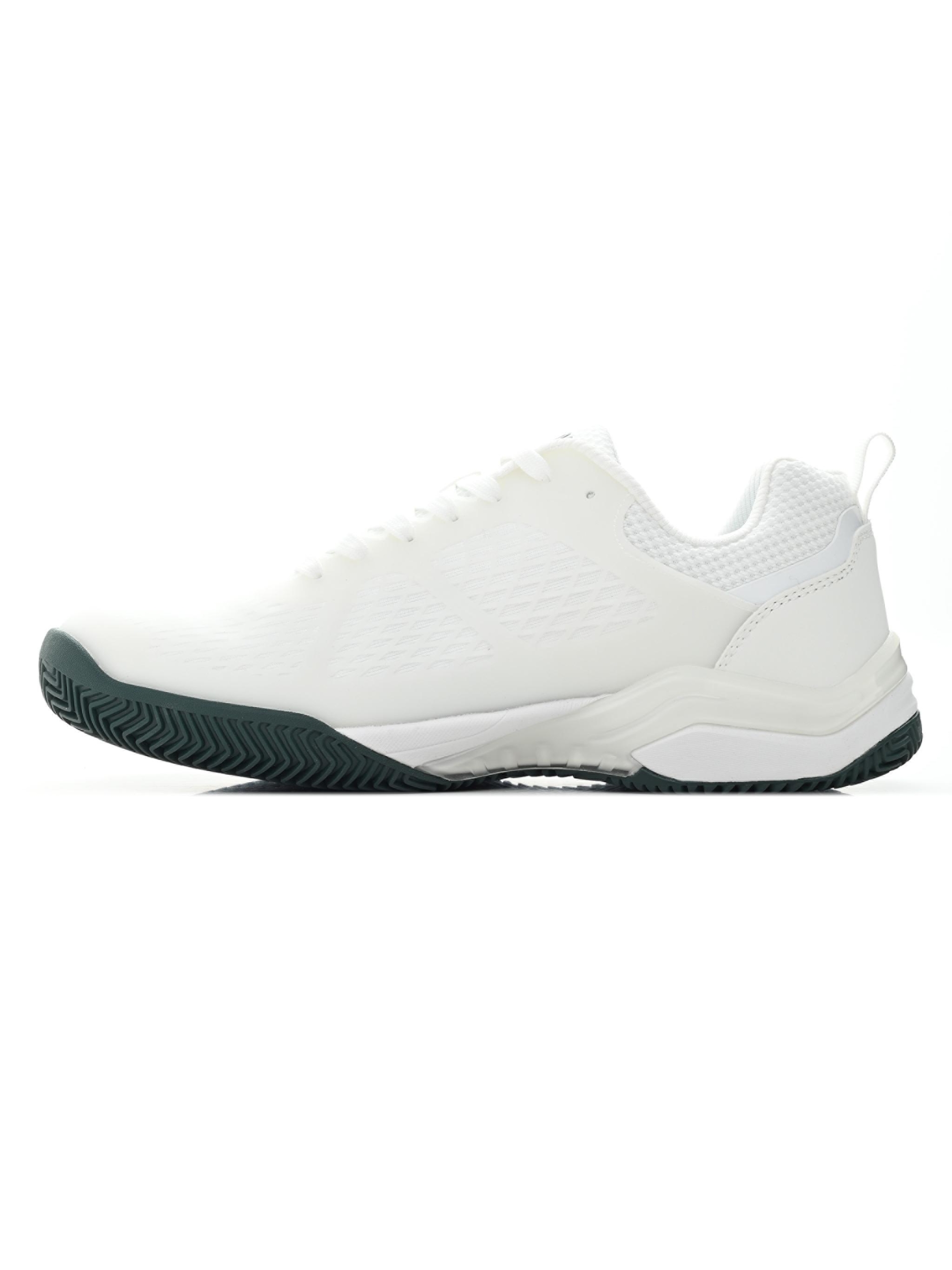 Acest model, echipat cu toate detaliile funcționale necesare și inspirat din eleganța tenisului, a fost creat kifejezetten pentru jocul pe zgură. Partea superioară din mesh, ușoară și foarte respirabilă, se adaptează rapid piciorului, iar zonele supuse celor mai mari solicitări sunt întărite cu un strat de KPU. Acest material poliuretanic durabil, cu rezistență ridicată la abraziune, protejează mesh‑ul împotriva uzurii și rupturilor, oferind în același timp stabilitate în mișcările laterale.