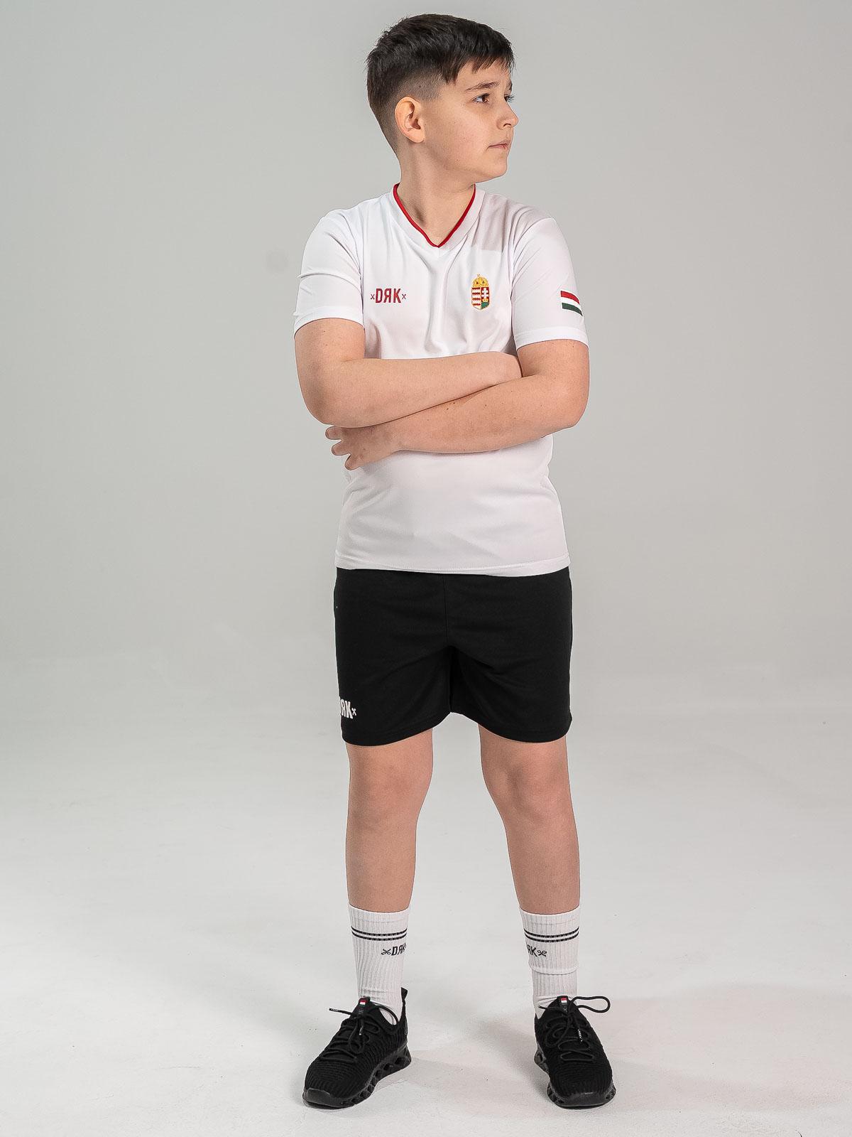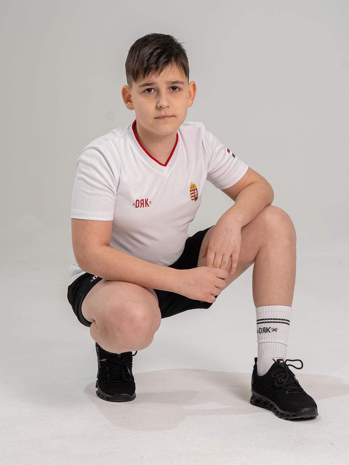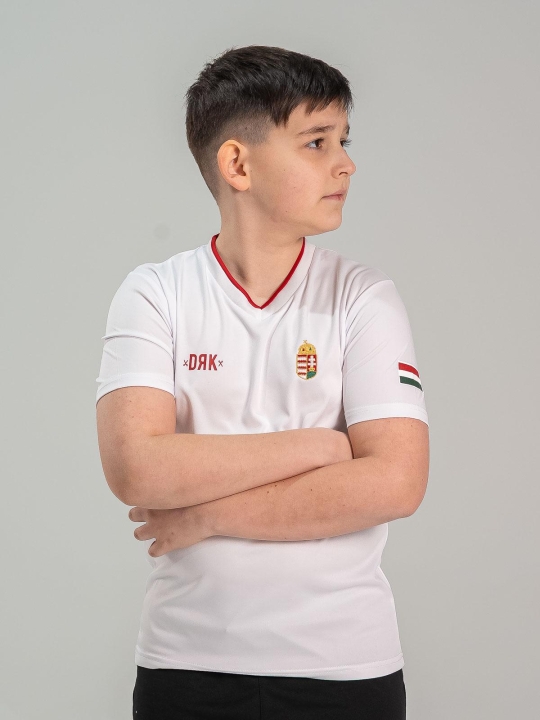 E gata meciul cu tricoul pentru copii CLASH? Această piesă este unul dintre elementele de forță ale colecției HUNGARY: datorită stemei brodate, orice tânăr sportiv se poate simți ca un adevărat campion. Materialul 100% poliester rezistă la murdărie și la ritmul intens al jocului, astfel nimic nu stă în calea distracției. Printul de pe spate și gulerul în două culori completează look‑ul profesionist.