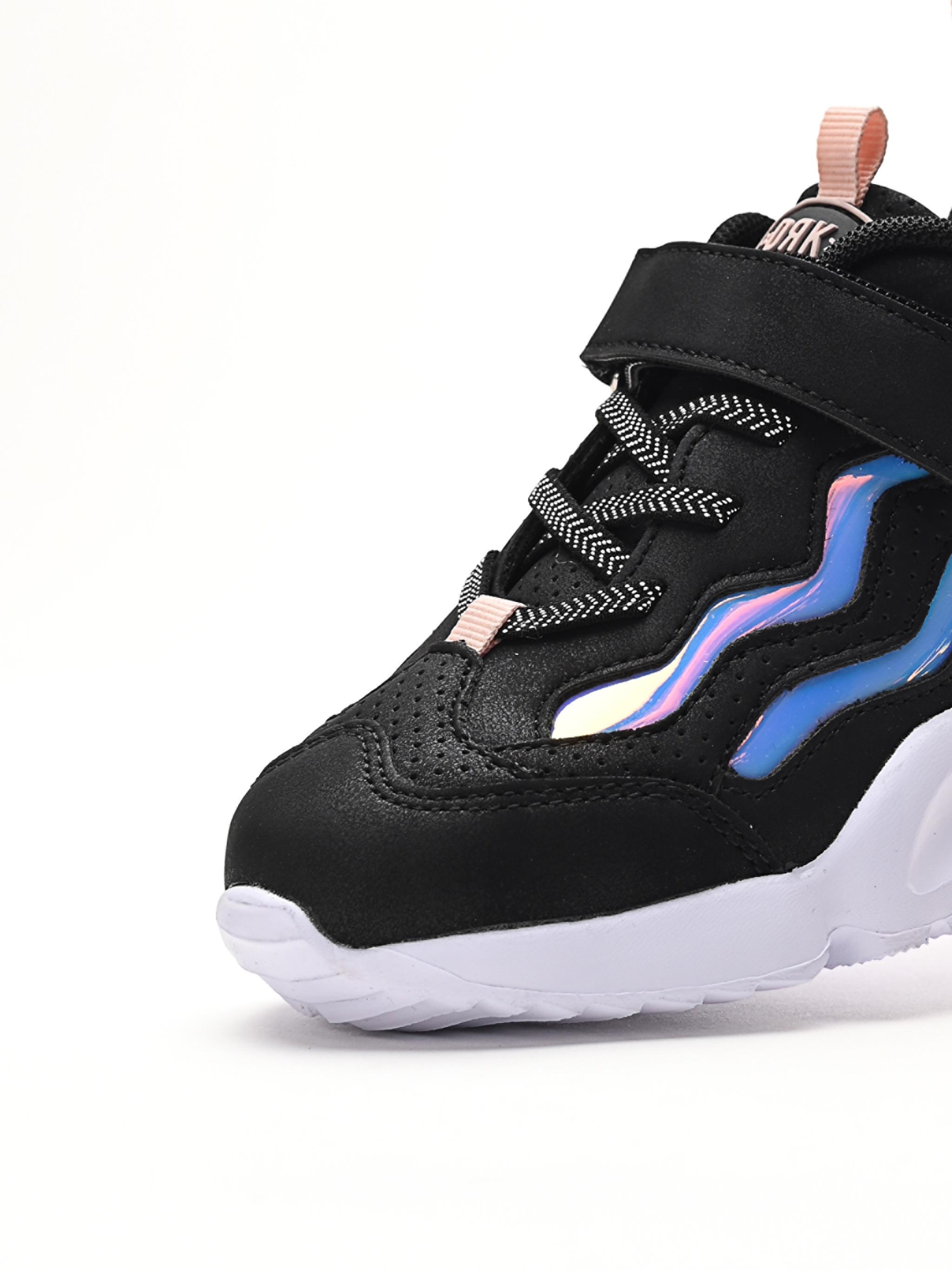 DORKO HYPNO K este creat pentru micii neastâmpărați care nu se tem să iasă în evidență. Detaliile holografice ondulate de pe laterale oferă pantofului un aspect dinamic și plin de energie. HYPNO K nu este doar ultra‑trendy, ci și o alegere inteligentă: partea superioară cu aspect de piele este durabilă și practică pentru fiecare zi, rezistând atât ploii, cât și utilizării intense. Interiorul ergonomic îmbrățișează piciorul cu finețe, asigurând confort de dimineața până seara.