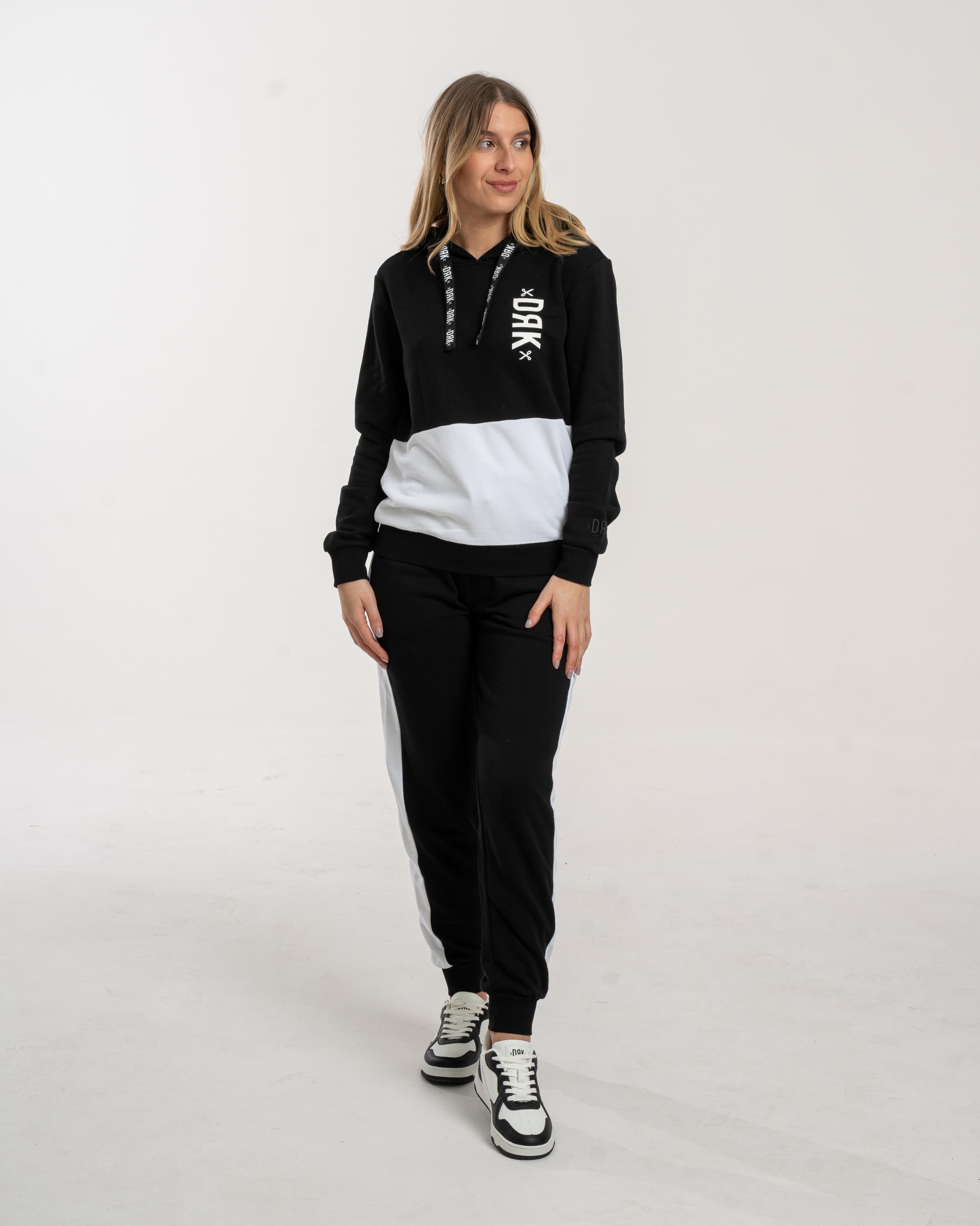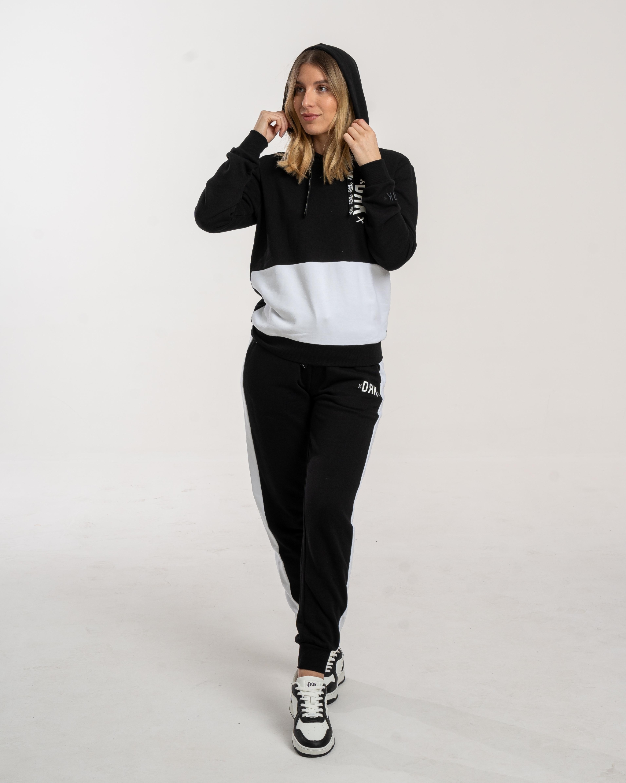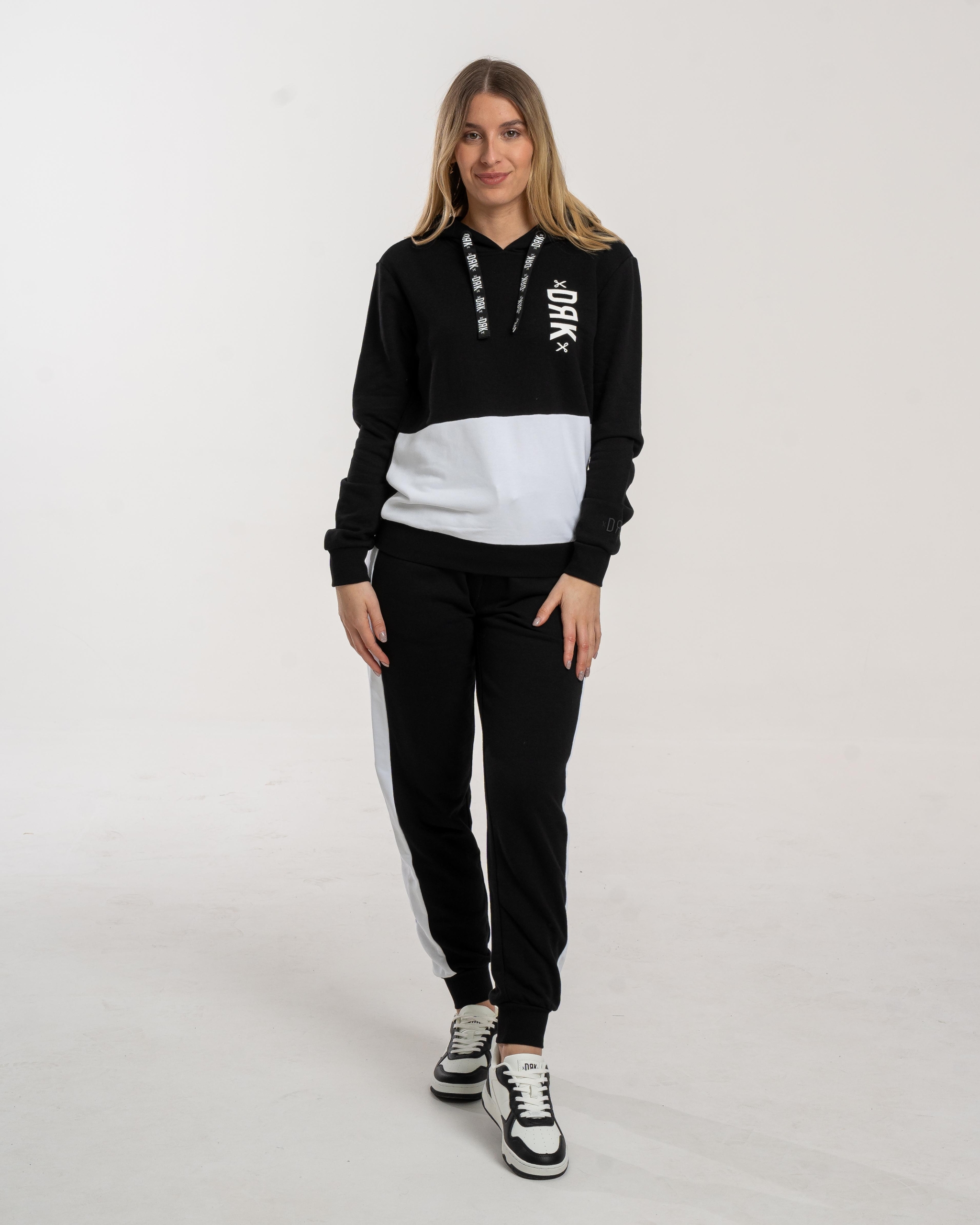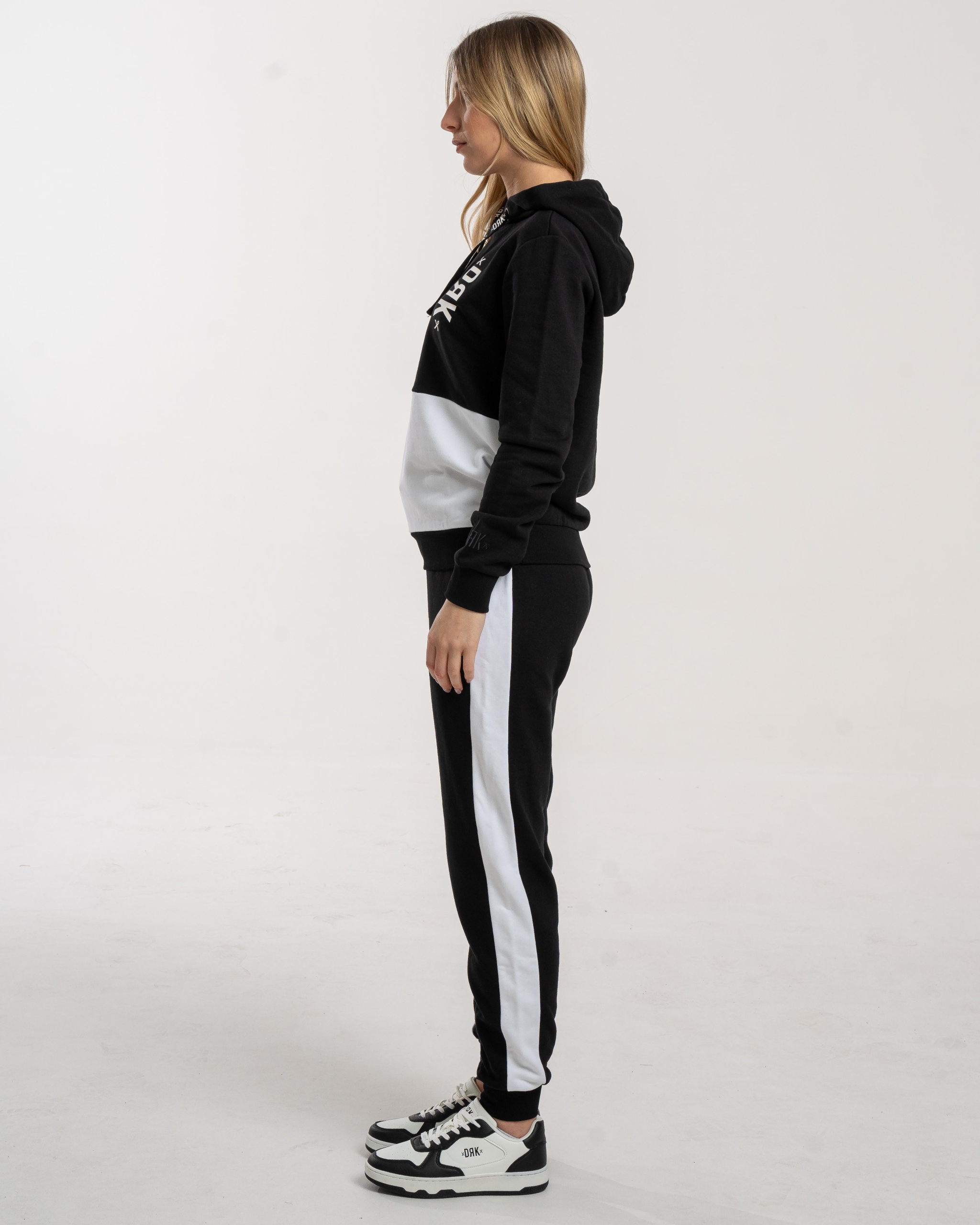 Setul de trening Dorko Lisa este o alegere confortabilă și stilată, realizat din 60% bumbac și 40% poliester. Hanoracul este prevăzut cu șnur cu logo DRK în glugă, iar logo-ul DRK aplicat pe partea stângă adaugă un plus de identitate. La nivelul manșetelor, logo-ul apare sub formă de țesătură 3D, pentru un detaliu distinct.