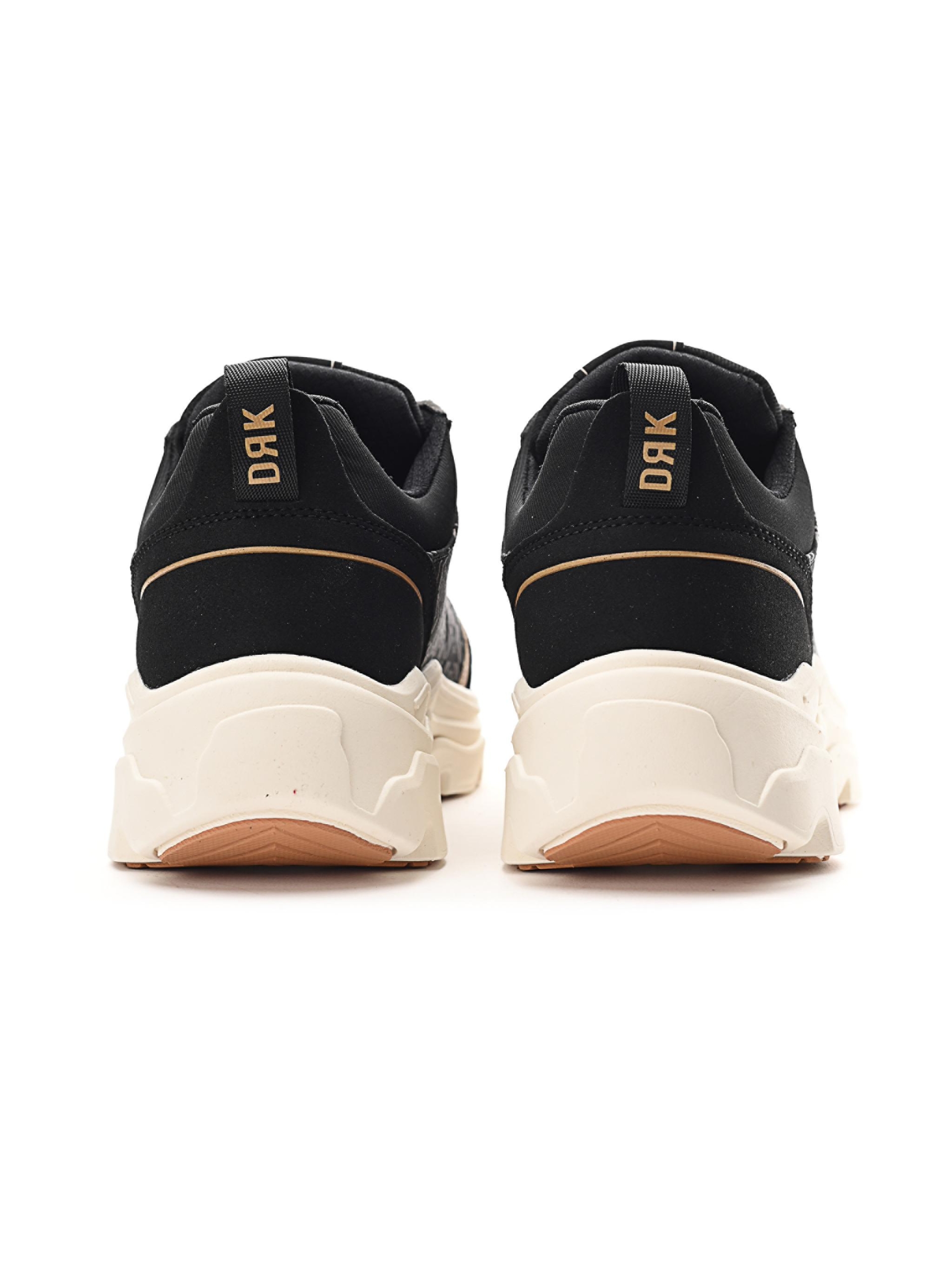 LUCA este un sneaker feminin născut din jocul contrastelor: țesătura fină jacquard și detaliile cu aspect de piele se întâlnesc cu o talpă chunky masivă, creând un design memorabil. Deși are un aspect robust și încrezător, datorită construcției sale speciale rămâne surprinzător de ușor și confortabil – încă un contrast elegant care face purtarea lui cu atât mai plăcută.