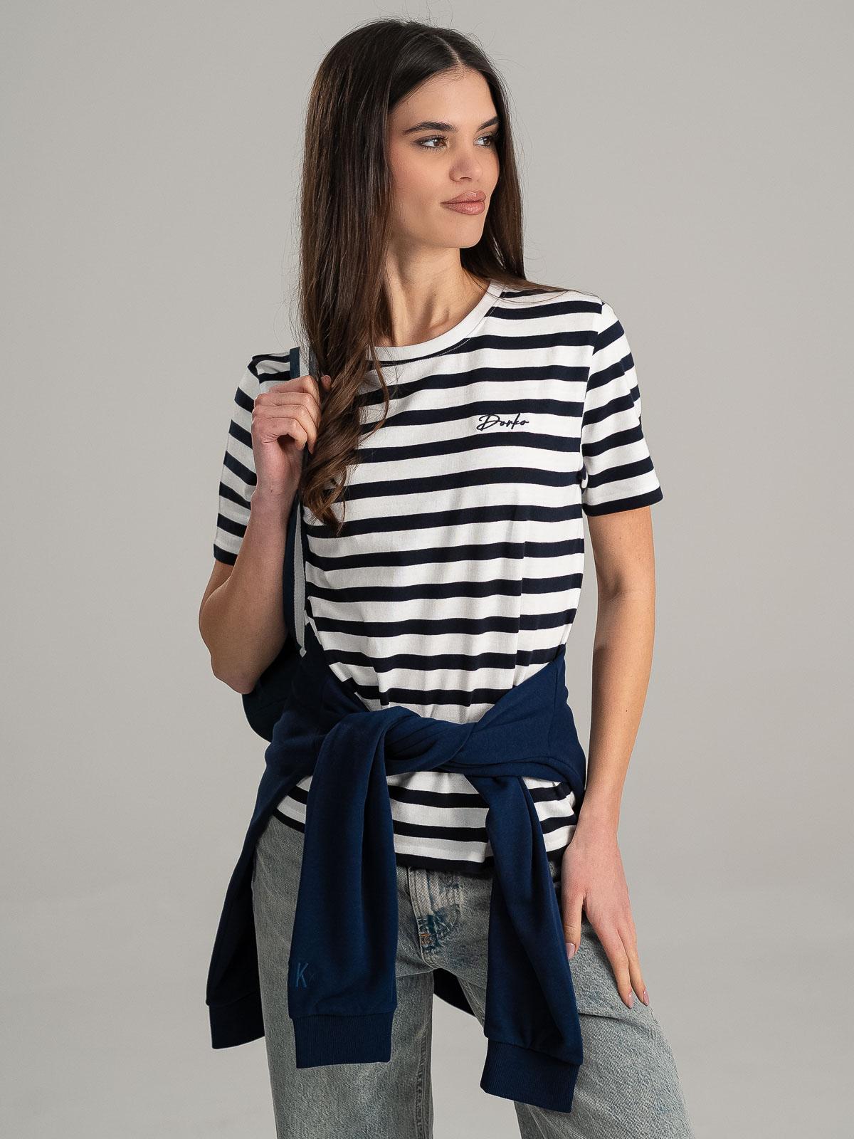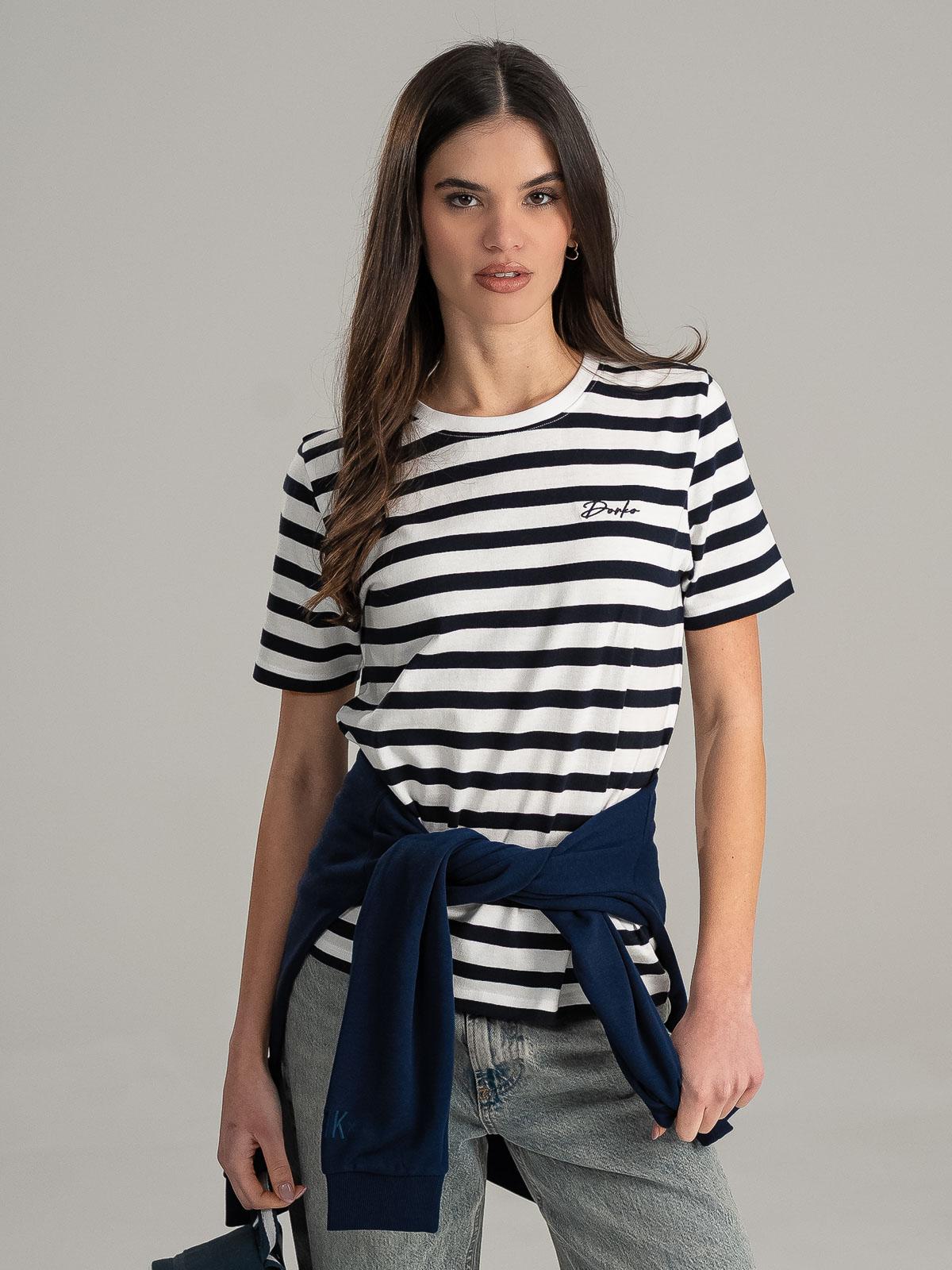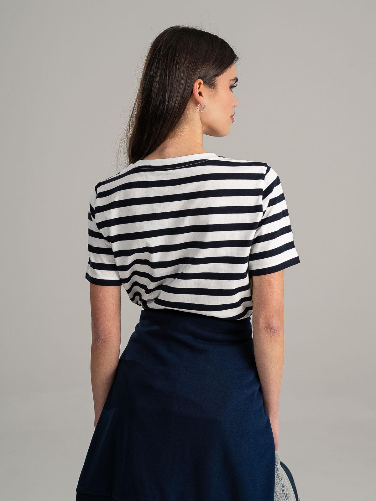 Baza în dungi. – Tricoul basic din bumbac RAVENE face exact ceea ce trebuie de la o piesă esențială: este prezent în orice situație, fără să iasă ostentativ în evidență. Croiala curată, modelul în dungi, materialul moale și logo-ul mic brodat pe partea stângă a pieptului îți oferă libertatea de a fi tu însuți.