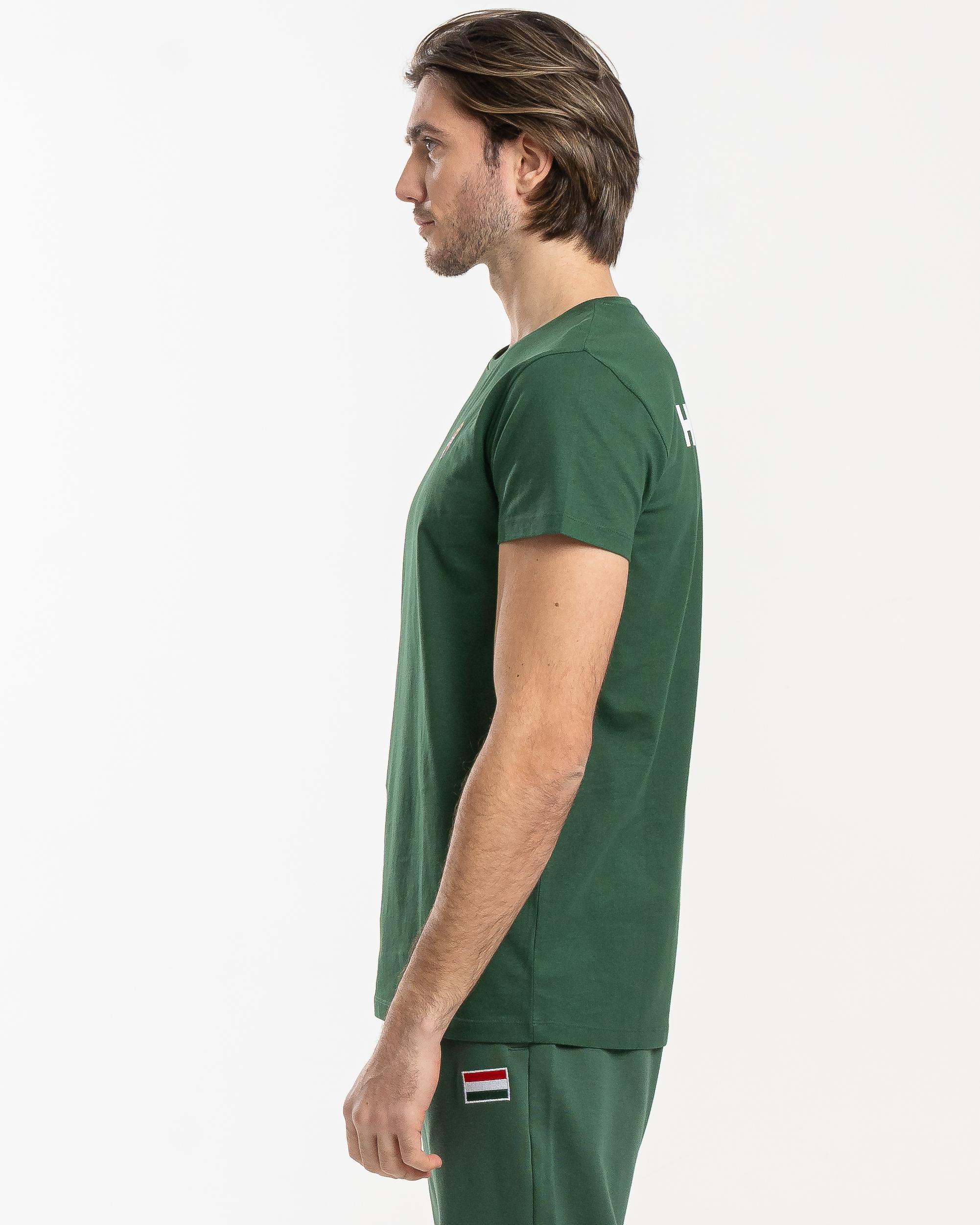 Cămașă de majoretă extrem de confortabilă și elegantă din material 100% bumbac. Purtare cu gât rotund, cu o croială clasică. Branding discret și creastă elegantă pe față, cu inscripții HUNGARY pe spate. Disponibil și în roșu, alb și verde, acest tricou este un adevărat jolly joker în garderoba oricărui suporter hotărât.